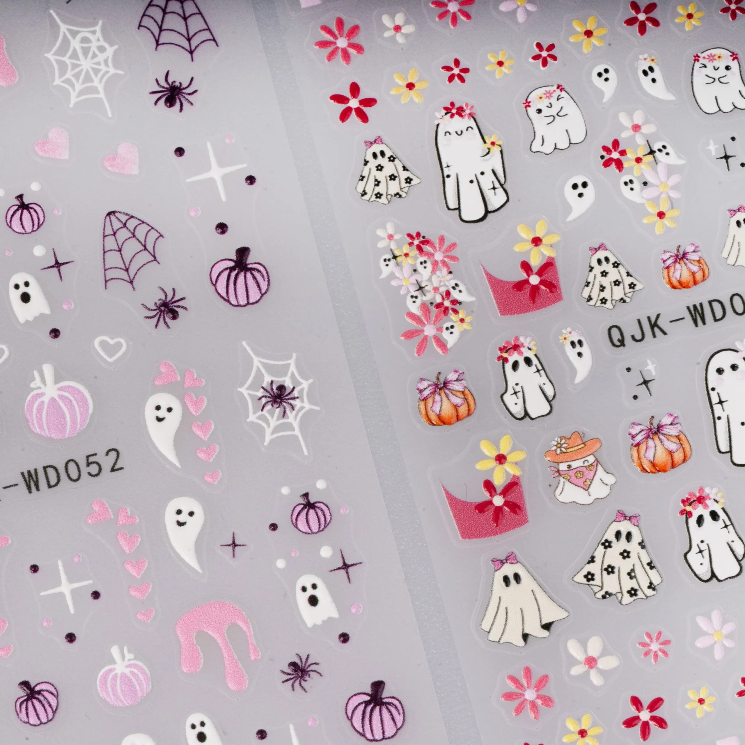 Διακοσμητικά Αυτοκόλλητα νυχιών CUTE GHOSTS σε μία καρτέλα με διάφορα σχέδια με θεματική τα γλυκά Φαντασματάκια!