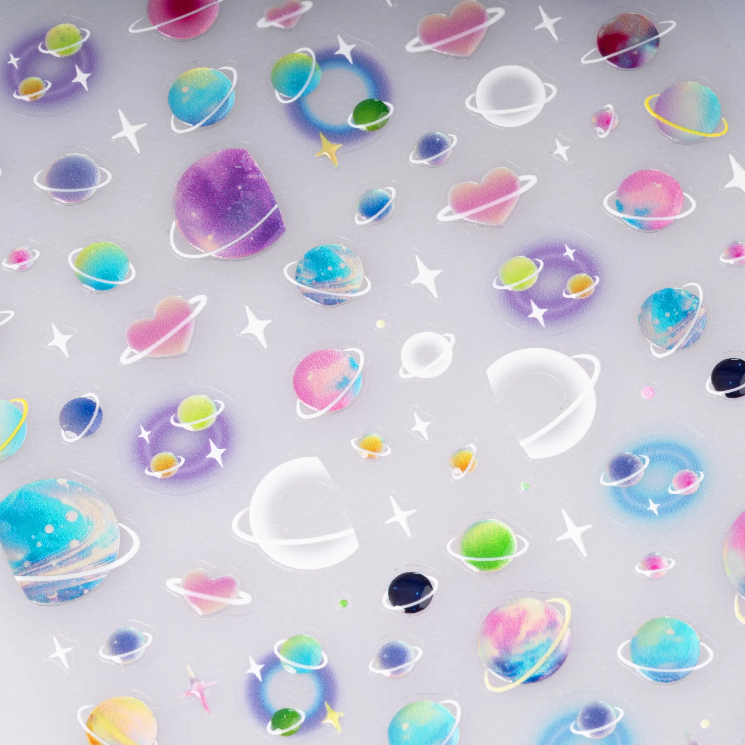 Διακοσμητικά Αυτοκόλλητα νυχιών PLANETS σε μία καρτέλα με διάφορα σχέδια πλανητών, ελαφρώς τρισδιάστατα!